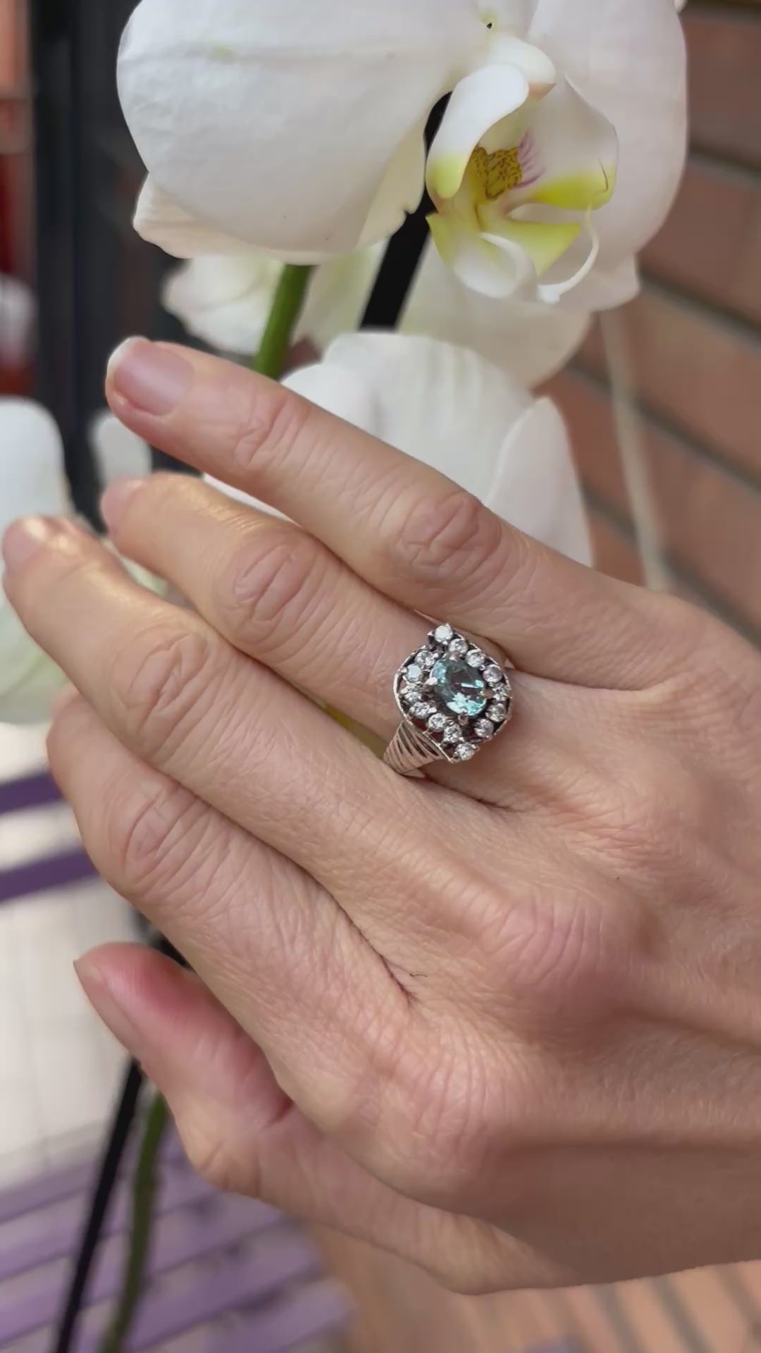 Un modello vintage in argento riportato alla luce e trasformato con l’inserimento di un topazio moderno, luminoso, dal taglio impeccabile.